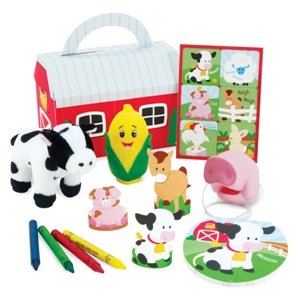 - Includes: 2 cows, 2 sheep, 2 ducks, 2 pigs, 2 tractors and 2 red barns
