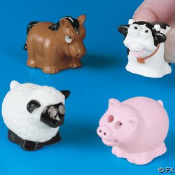 Give these farm animals a squeeze to make their eyes bulge! For your next barnyard party, add these 1 1/4" - 1 1/2" vinyl characters to goody bags.